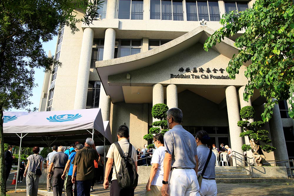 晴空万里,参与浴佛的民众陆陆续续前来静思堂。(摄/ 冯桂琼)