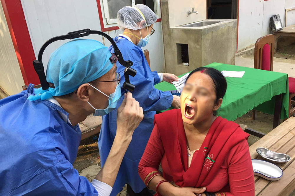 年底牙科预约多,加上还有尼泊尔义诊和筹备工作,但许智亮(前排左一)不曾生出退转心。(摄/ 曾美珍)