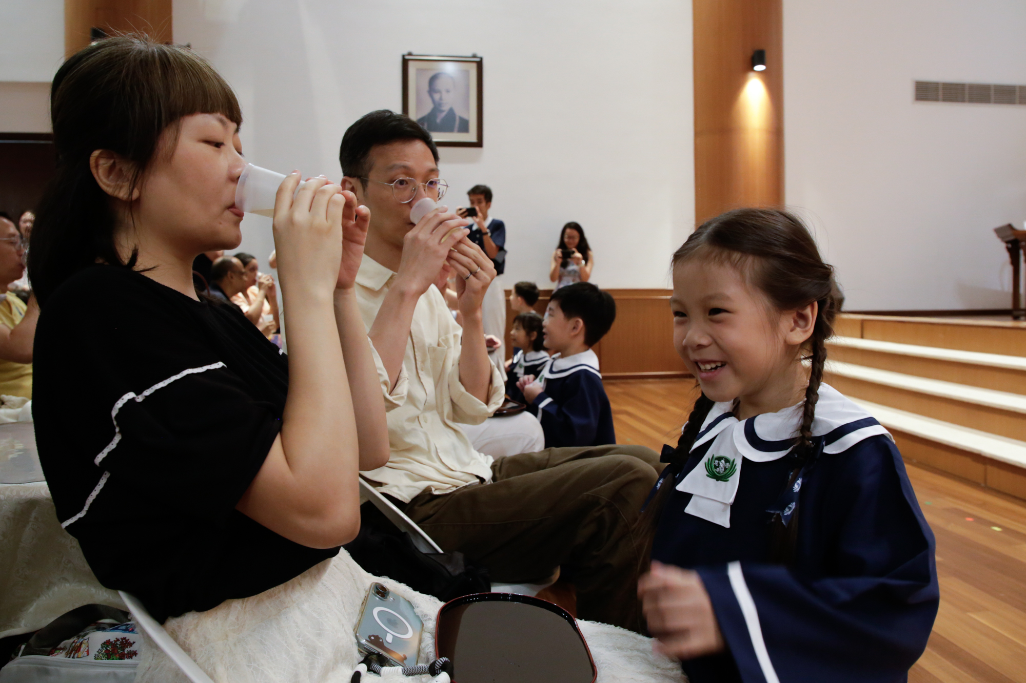 奉茶环节是每年慈济大爱幼教中心毕业典礼必不可少的环节,这深情一刻,总令父母动容。摄/ 冯桂琼